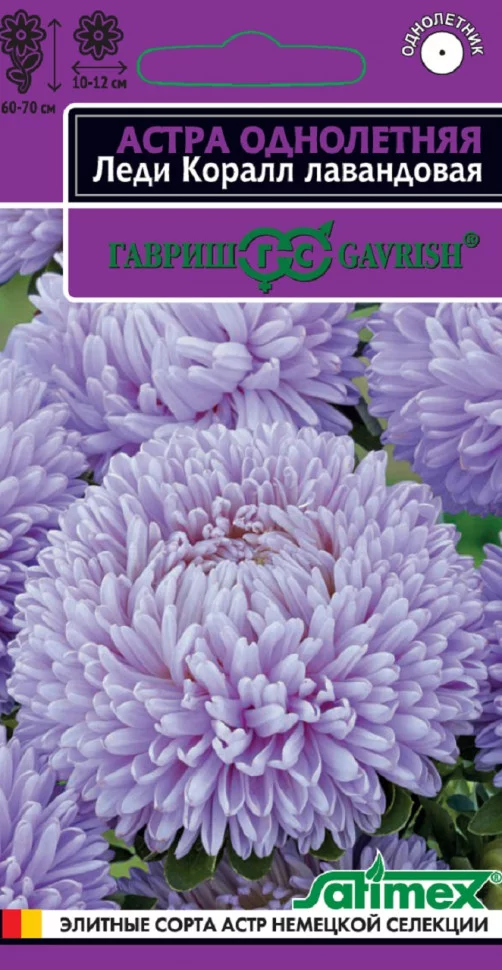Роскошная серия высоких астр (60-70 см) с пирамидальной формой куста. Многочисленные плотно-махровые розовидные соцветия диаметром 10-12 см на прочных цветоносах долго сохраняют свежесть в цветниках и букетах. Язычковые цветки нежного лавандового оттенка. Для выращивания подходят хорошо освещенные участки с плодородной суглинистой или супесчаной почвой. Выращивают чаще всего рассадным способом. Семена высевают в марте-апреле, пикируют с развитием первой пары настоящих листочков по схеме 5х5 см, в открытый грунт рассаду высаживают с середины мая до начала июня. Возможен посев семян в открытый грунт ранней весной или под зиму с последующим мульчированием торфом или опилками. Сорта серии Леди Корал имеют высокую устойчивость к фузариозу и благодаря большому количеству соцветий на одном растении долго сохраняют декоративность в любых погодных условиях. Лучшая серия для профессионального выращивания на срезку.