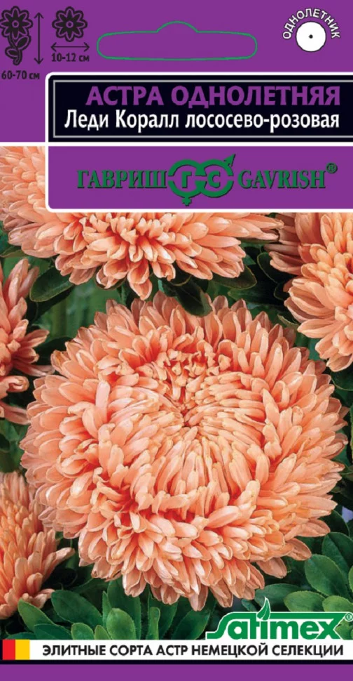 Роскошная серия высоких астр (60-70 см) с пирамидальной формой куста. Многочисленные плотно-махровые розовидные соцветия диаметром 10-12 см на прочных цветоносах долго сохраняют свежесть в цветниках и букетах. Язычковые цветки лососево-розовые. Для выращивания подходят хорошо освещенные участки с плодородной суглинистой или супесчаной почвой. Выращивают чаще всего рассадным способом. Семена высевают в марте-апреле, пикируют с развитием первой пары настоящих листочков по схеме 5х5 см, в открытый грунт рассаду высаживают с середины мая до начала июня. Возможен посев семян в открытый грунт ранней весной или под зиму с последующим мульчированием торфом или опилками. Сорта серии Леди Корал имеют высокую устойчивость к фузариозу и благодаря большому количеству соцветий на одном растении долго сохраняют декоративность в любых погодных условиях. Лучшая серия для профессионального выращивания на срезку.