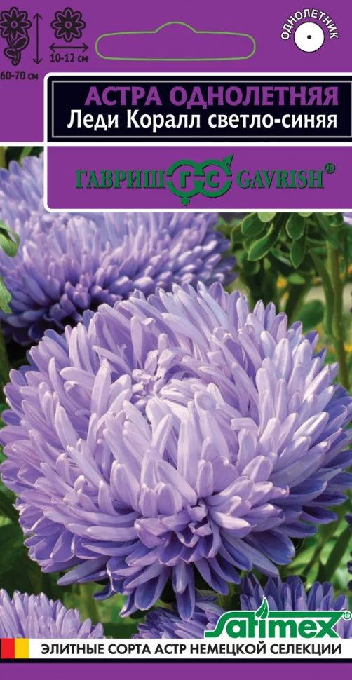 Роскошная серия высоких астр (60-70 см) с пирамидальной формой куста. Многочисленные плотно-махровые розовидные соцветия диаметром 10-12 см на прочных цветоносах долго сохраняют свежесть в цветниках и букетах. Язычковые цветки светло-синие. Для выращивания подходят хорошо освещенные участки с плодородной суглинистой или супесчаной почвой. Выращивают чаще всего рассадным способом. Семена высевают в марте-апреле, пикируют с развитием первой пары настоящих листочков по схеме 5х5 см, в открытый грунт рассаду высаживают с середины мая до начала июня. Возможен посев семян в открытый грунт ранней весной или под зиму с последующим мульчированием торфом или опилками. Сорта серии Леди Корал имеют высокую устойчивость к фузариозу и благодаря большому количеству соцветий на одном растении долго сохраняют декоративность в любых погодных условиях. Лучшая серия для профессионального выращивания на срезку.