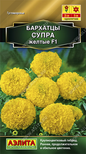 Бархатцы Супра желтые F1 прямостоячие 10 шт (Аэлита)