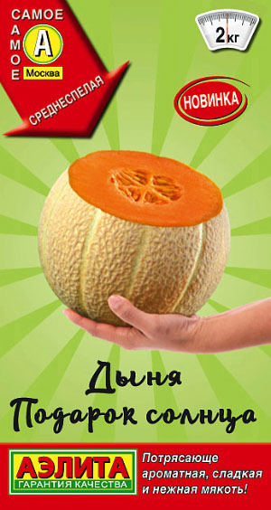 Новый сорт дыни не оставит равнодушным ни одного гурмана! Сочная, плотная и ароматная мякоть оранжевого оттенка просто тает во рту! Вкус очень сладкий, освежающий. Сорт среднеспелый – период от посева до созревания первого плода составляет около 90 дней. Отличается высокой устойчивостью к заболеваниям и ожогам, адаптированностью к перепадам температур и великолепной транспортабельностью. Масса дыни достигает 1,5-2,5 кг. Плоды отлично хранятся, не утрачивая вкуса и аромата. Нарезанная аккуратными кубиками дыня станет неповторимым украшением фруктовых салатов и коктейлей.