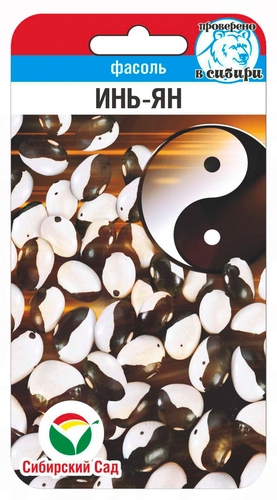 Растение компактное, высотой до 45 см. Бобы длиной до 15 см с большим количеством зерен. Зерна необычны по цвету, на половину белые, наполовину кофейной окраски, похожи на известный восточный символ «Инь-Ян». Рекомендуется для приготовления необычных гарниров, сушки, зимних заготовок. Урожайность стручков и зерен до 5 кг/м2.