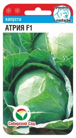 Очень популярный в России высокоурожайный гибрид голландской селекции. Характеризуется оптимальной комбинацией урожайности, товарности и вкусовых качеств. Созревает через 115-120 дней после высадки рассады в открытый грунт. Кочан крупный, ровный, с короткой кочерыгой, темно-серо-зеленого цвета, устойчивый к растрескиванию. Внутренняя структура высокого качества, плотность выше средней. Вес кочанов в среднем 4 - 8 кг, иногда до 10 кг. Вкусовые качества в свежем виде хорошие и отличные. Сочные и нежные внутренние листья делают Атрию F1 незаменимой для квашения. Гибрид рекомендуется для употребления в свежем виде, переработки и длительного зимнего хранения в течение 6 месяцев.