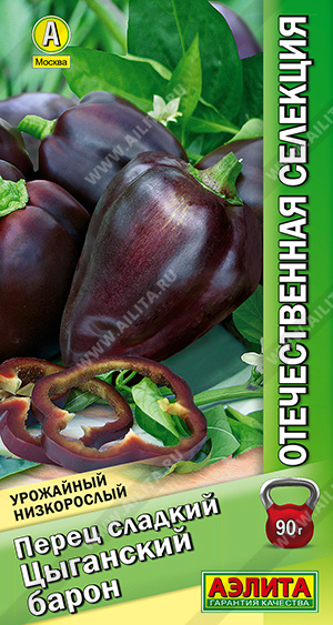 Высокоурожайный среднеспелый сорт для открытого грунта и пленочных укрытий. Период от появления всходов до созревания первого урожая 125-135 дней. Растения полураскидистые, высотой 50-60 см. Плоды в технической спелости темно-фиолетовые с переходом в коричневый, в биологической – темно-красные, глянцевые, массой 60-90 г. Толщина стенок 4-5 мм. Мякоть сладкая, сочная и ароматная. Сорт рекомендуется для использования в свежем виде, в домашней кулинарии, заморозки и консервировании. Устойчив к вершинной гнили и фузариозу.