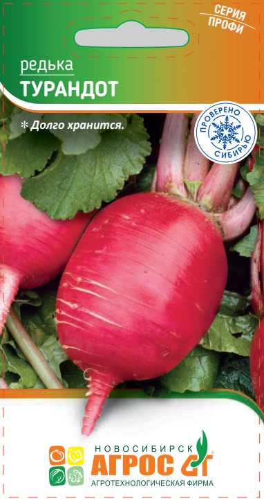 Раннеспелый сорт редьки китайской. Розетка приподнятая. Корнеплоды длиной 10 см, диаметром 8 см. Округлой формы, карминного цвета. Масса 190-200 г. Мякоть белая, сочная, нежная. Долго хранится. Ценность сорта – высокая урожайность, товарные и вкусовые качества, лежкость корнеплодов.
