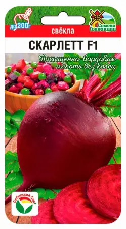 Растения формируют мощную, вертикально ориентированную ботву. Мякоть тёмно-бордовая, без выраженных кольцеватостей, с содержанием сахаров до 15%. Гибрид отличается хорошей лёжкостью и высоким потенциалом к длительному хранению. Пригоден для реализации на свежем рынке, переработки и закладки в хранилища. Не склонен к перерастанию даже при разреженных посевах. Урожайность — 5–6 кг с 1 м².