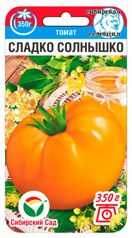 Среднеранний (95-105 дней) крупноплодный урожайный сорт селекции Агрофирмы «Сибирский сад» с очень вкусными ярко-оранжевыми плодами похожими на осеннее солнышко. Томаты округлые, ровные, мясистые и сладкие, компактно умещаются на женской ладони, достаточно хорошо лежат и хранятся. Желтая мякоть плодов с высоким содержанием каротина, минимумом кислот рекомендована для детского и диетического питания. Выращивается в открытом и защищенном грунте.