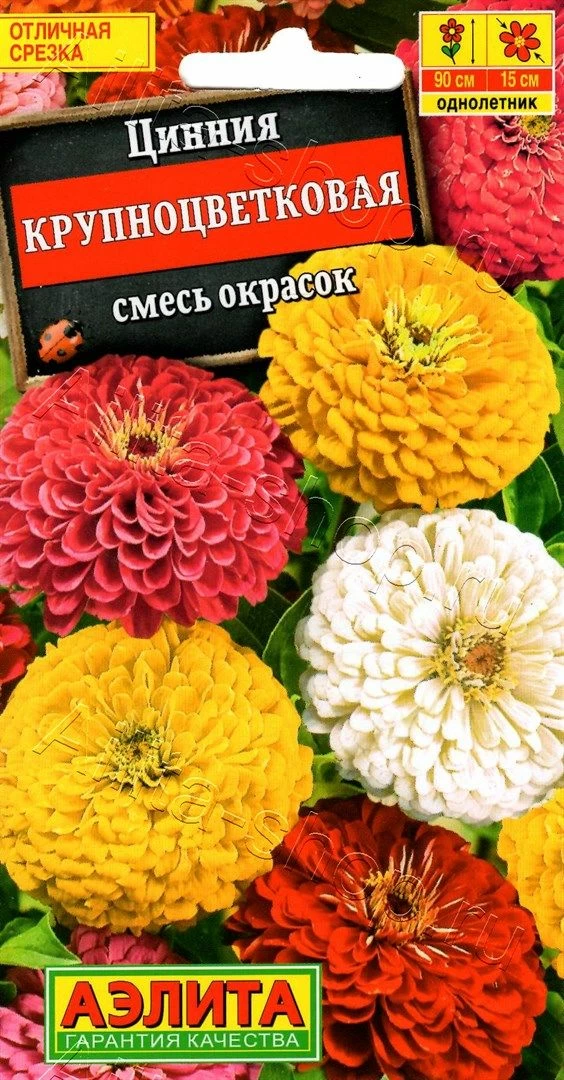 Обильноцветущая, высокорослая смесь циннии с крупными, махровыми соцветиями-корзинками Ø13-15 см. Растения высотой до 90 см, крепкие, с прочными цветоносами. Цветение раннее и продолжительное, с июня до заморозков. Циннии теплолюбивые, засухоустойчивые, предпочитают солнечные места, хорошо переносят воздействие непогоды. Используются на клумбах и рабатках, великолепно смотрятся в групповой посадке. Срезанные цветы долго стоят в воде.
